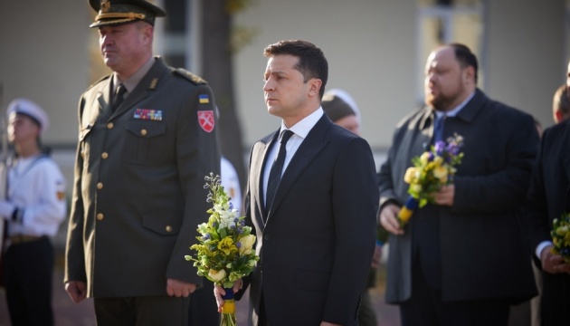 بوابة أوكرانيا – كييف في 15 اكتوبر 2021- شارك الرئيس زيلينسكي في حفل تكريم ذكرى ضحايا أوكرانيا وذلك في يوم المدافعين عن أوكرانيا.