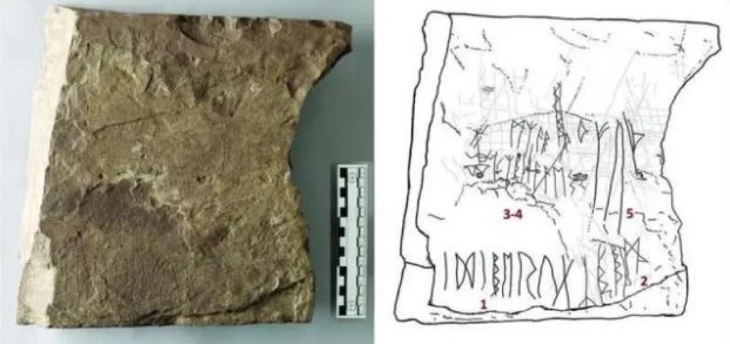 ووجد الباحثون أن هذه القطع المختلفة تتناسب مع بعضها البعض مثل اللغز، وكشفوا أن هذه القطع تشكل حجرًا واحدًا، منقوشًا بمزيج “غير عادي” من الأحرف الرونية ورموز أخرى مجهولة الهوية.